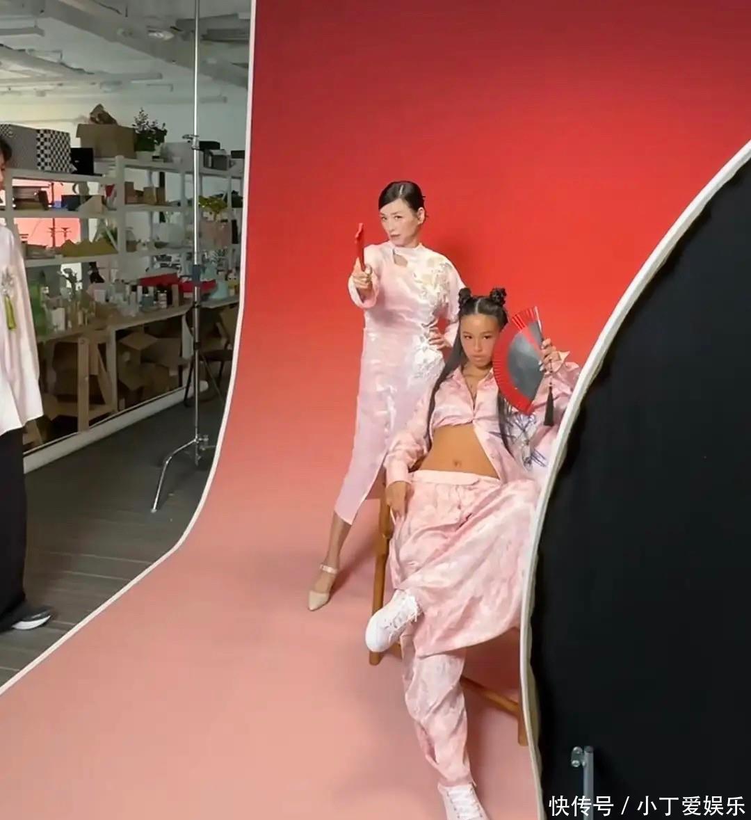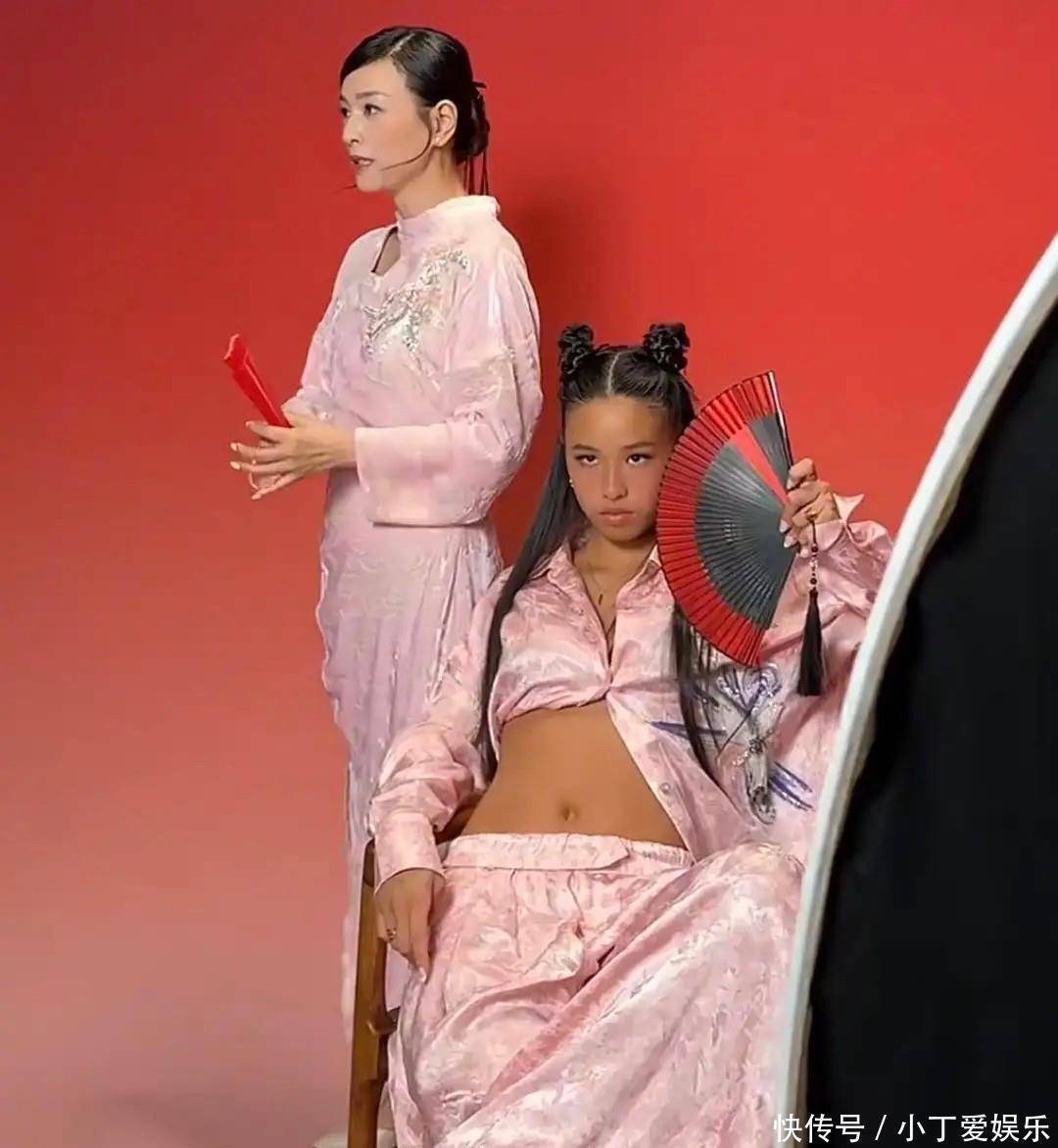 小姑娘一件粉色衬衫全解开只剩一颗扣子,露出小肚子,头上扎俩揪揪还拿折扇。网友说看着像混混,也有人觉得这是个性表达。另一边她妈穿旗袍看起来温温柔柔,俩人对比太突兀。